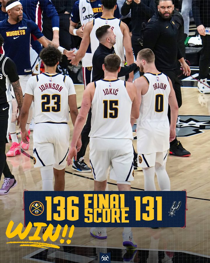 Three-time MVP Nikola Jokic added 31 points, 20 rebounds, and 12 assists, delivering yet another dominant triple-double. His presence in the paint and vision in transition proved vital as Denver outscored San Antonio 42-25 in the final quarter.