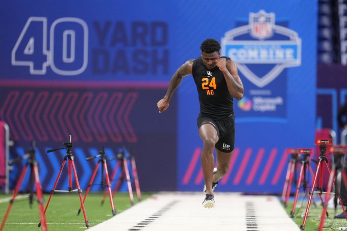 Omar Cooper during the NFL Draft Combine. Credit: Ian Rapoport via X