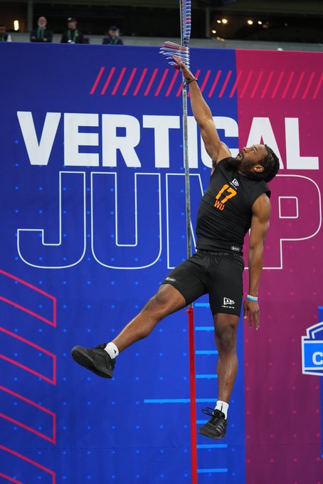 Ted Hurst during the NFL Draft Combine. Credit: Ian Rapoport via X