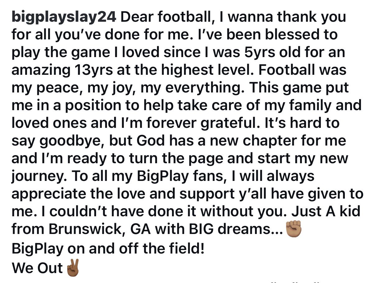 Slay’s message was simple yet powerful: “It’s been an incredible journey. I’m grateful for every teammate, coach, and fan who supported me along the way.”